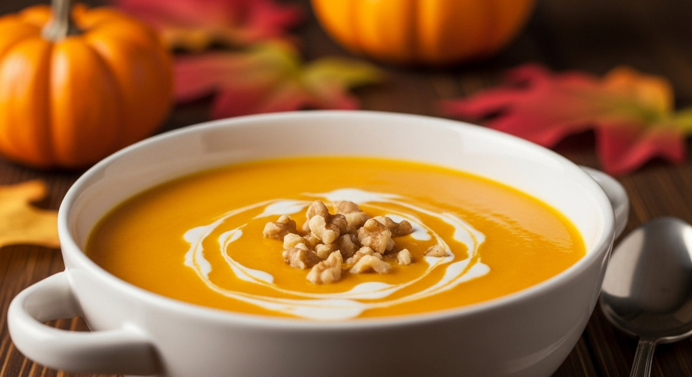 The ultimate comfort bowl! This creamy, velvety butternut squash soup is topped with crunchy, savory walnuts and a swirl of cream. Perfect for a cozy autumn evening!