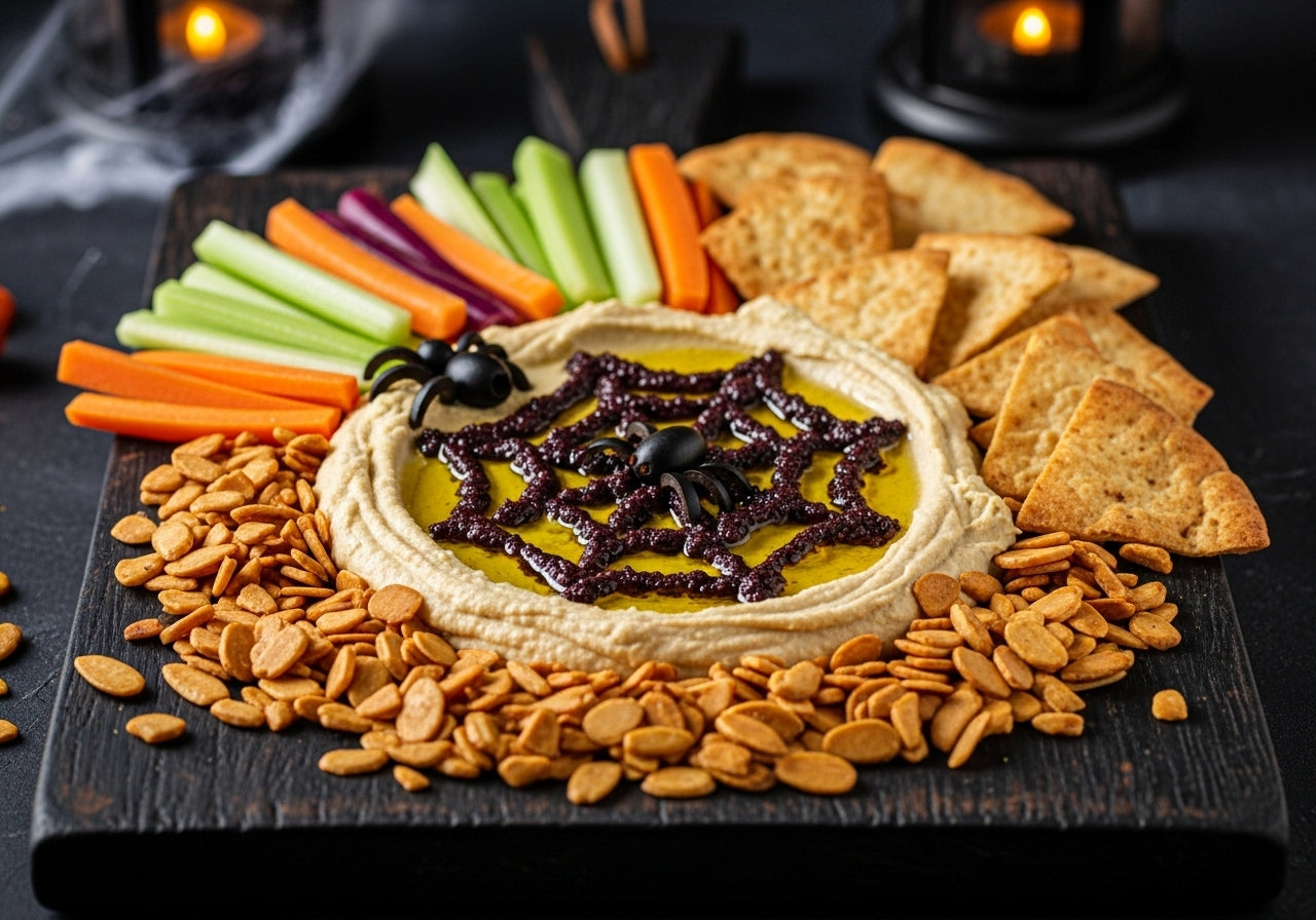 Get ready for a frightfully good snack! This Spooky Spider Web Hummus Dip is easy, delicious, and topped with crunchy, roasted California almonds. It's the perfect protein-packed appetizer for your Halloween party!